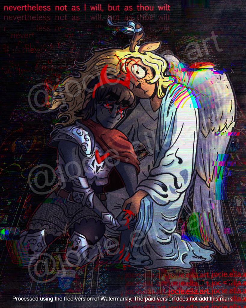 This is a piece I made for a contest on Instagram, for which the required subjects were the Snowgrave Route and religious themes/imagery. This is based off of Carl Heinrich Bloch’s painting “Christ At Gethsemane I”.